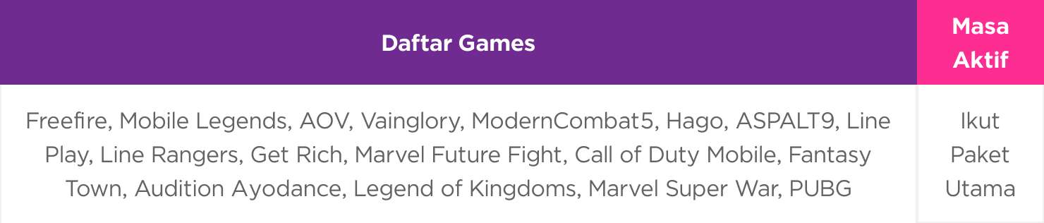- Masa aktif dari Bonus Unlimited Gaming akan mengikuti paket internet utama yang terpanjang