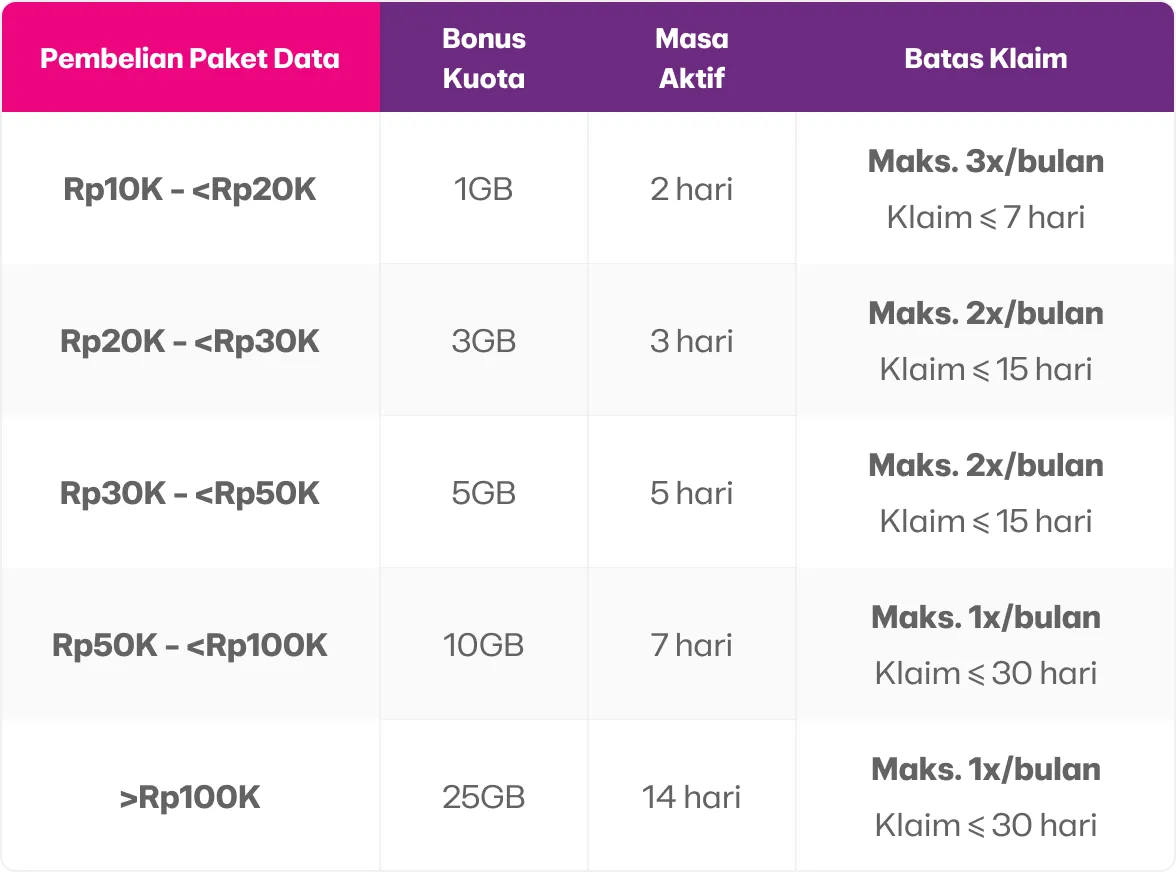 - Pastikan nomor aktif untuk bisa menggunakan bonus kuota.