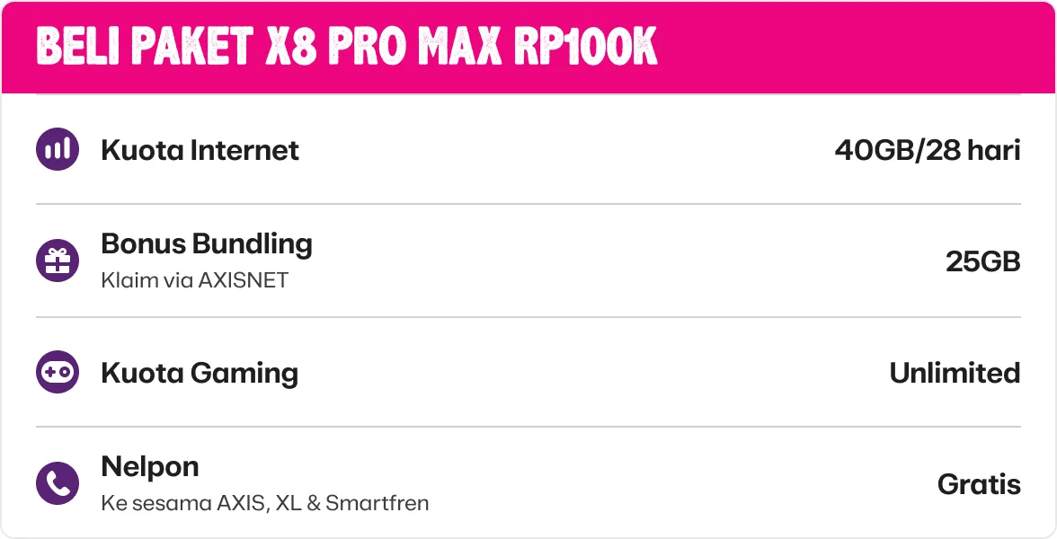 - Paket khusus ini hanya dapat digunakan pada handphone baru POCO X8 Pro Max dengan stiker khusus bundling AXIS yang tertera pada kotak kemasan.